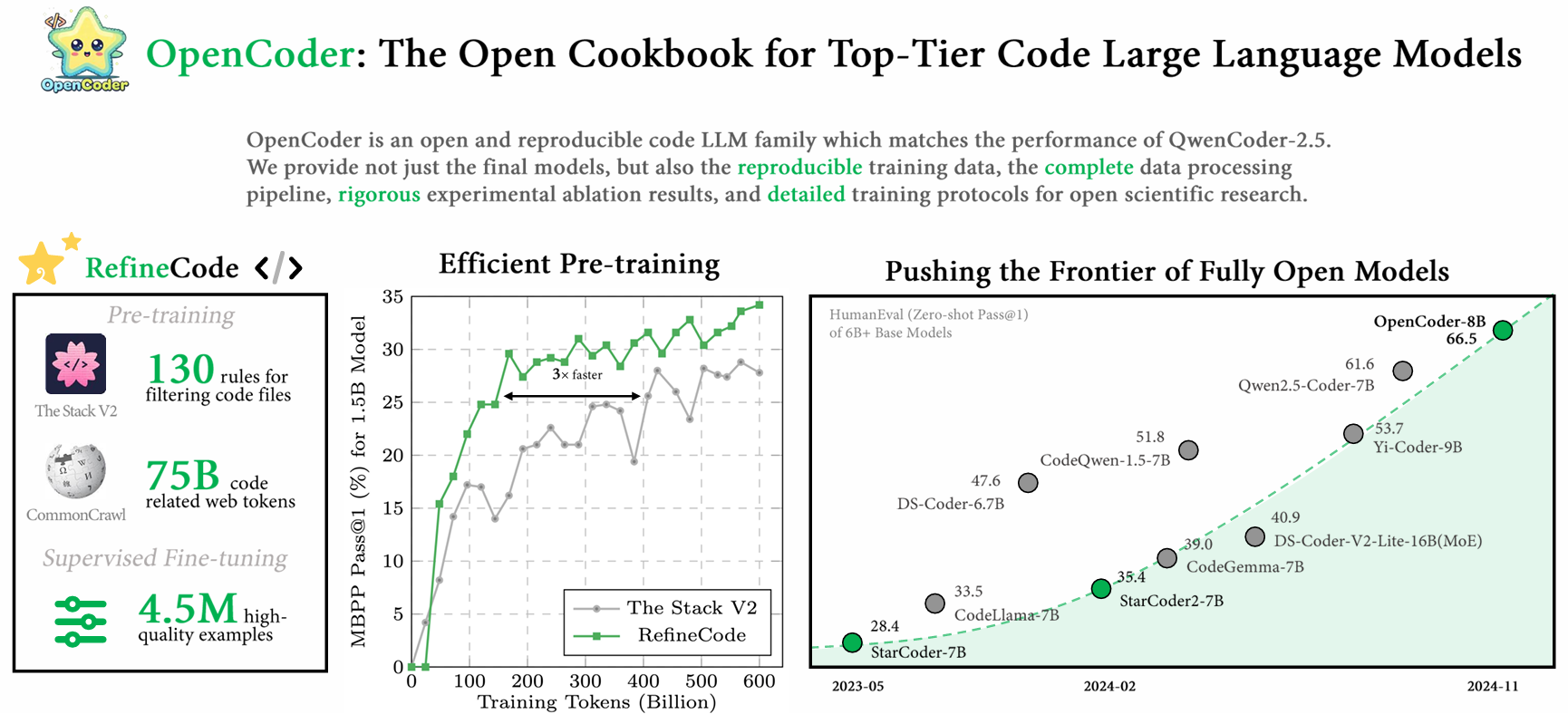 Welcome to the last arXiv Dive of 2024! Every other week we have been diving into interesting research papers in AI/ML. In this blog we’ll be diving into Open Coder, a paper and cookbook for how to build an open and reproducible code LLM which matches the top-tier coding LLMs of similar sizes, and how to generate synthetic data for your own code LLM. What’s cool about this work is not only do they release the model weights, but they release all the code and the data as well.