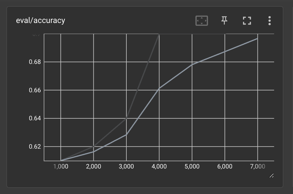 train_results = trainer.train()Our computer will start chugging through all the data and training our model. To see how the training is doing over time, you can fire up tensorboard.
