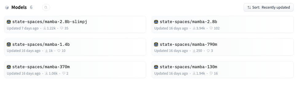 python prompt_mamba.py state-spaces/mamba-130mYou can try this same script any of the models listed here: