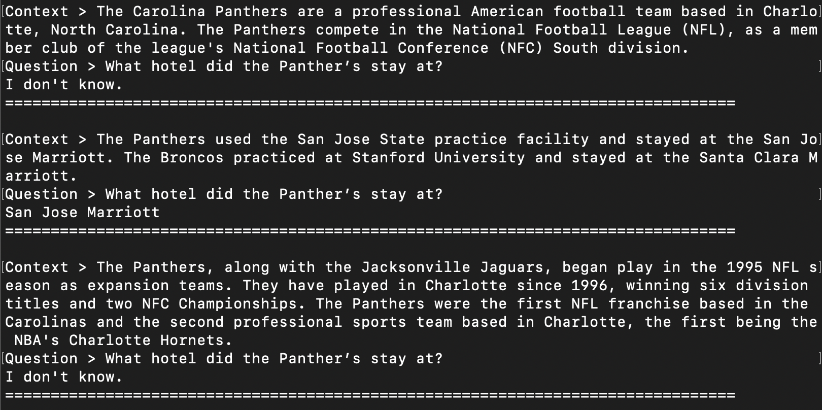 python prompt_mamba_with_context.py Oxen-AI/mamba-130m-contextThis model now can take the paragraphs from above and reply "I don't know" to the ones who do not have the answer embedded, and properly extract the answer for the one that does.