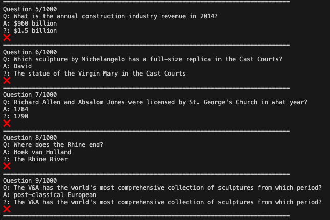 python eval_mamba_with_context.py models/mamba-130m-context data/Mamba-Fine-Tune/squad_val_1k.jsonl data/Mamba-Fine-Tune/results_context.jsonlLetting this run to completion, we now outperform the 2.8b model and got to 12% accuracy!