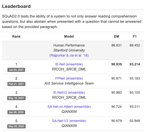 For one, they did not benchmark against SQuAD, so I have no baseline to compare my model to.
