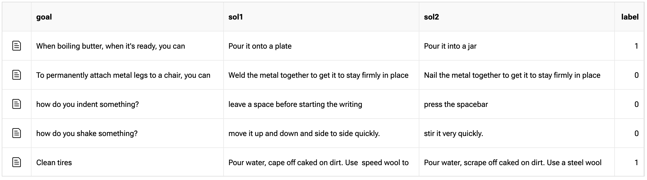 They did benchmark on a question-answering dataset called PIQA so I decided to look into this dataset a bit.