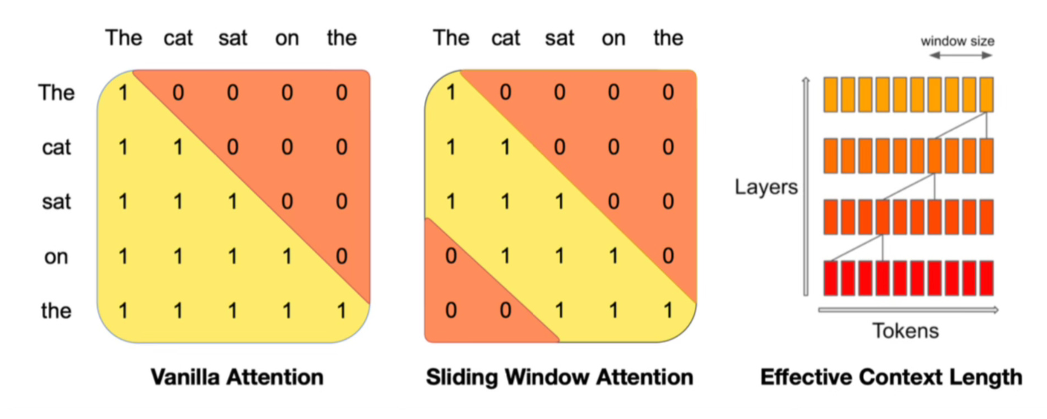- Sliding Window Attention - precise retrieval of memory