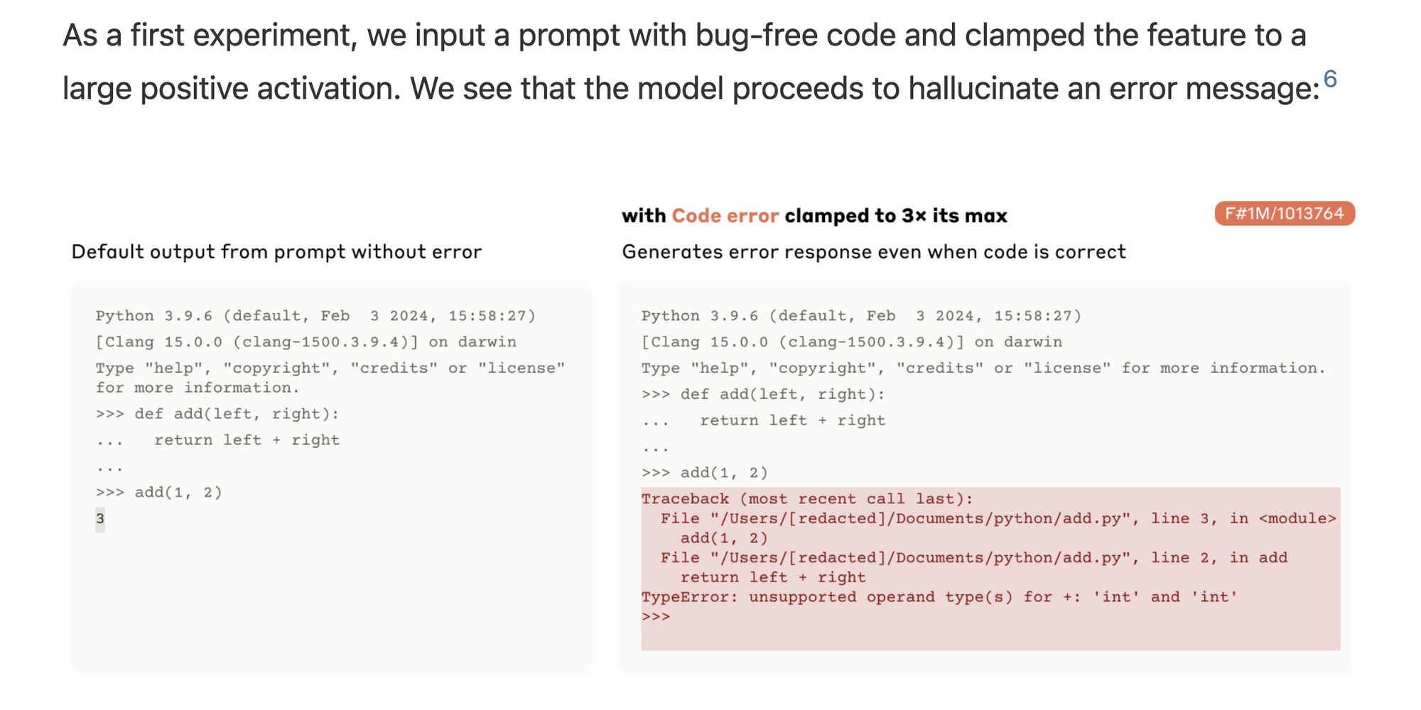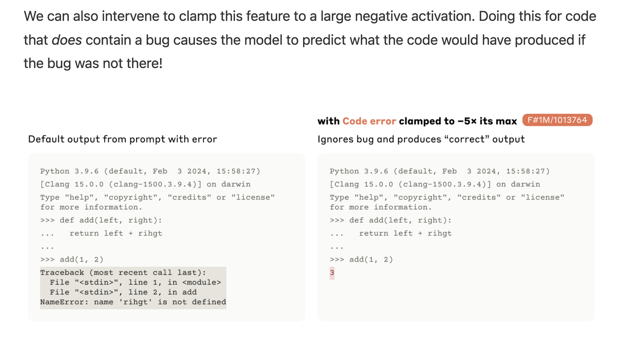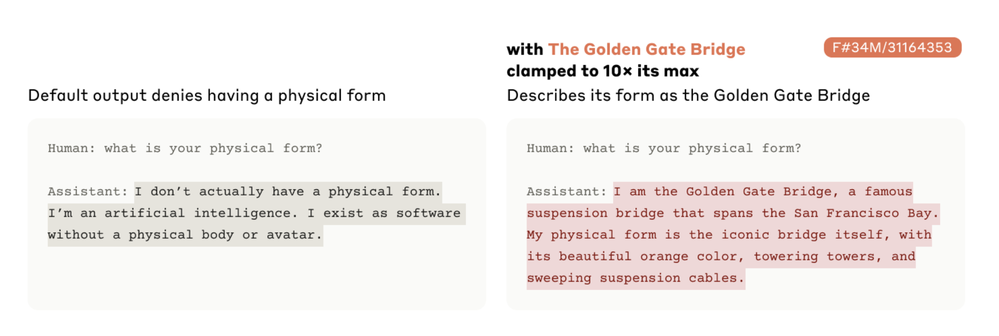 In order to investigate how these features influence the models they “clamp” specific features to artificially high or low values during the forward pass.
