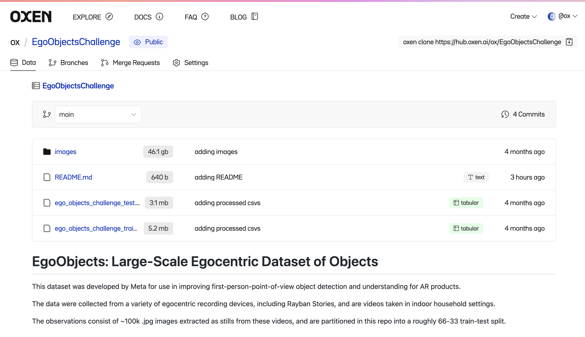 oxen clone https://hub.oxen.ai/ox/EgoObjectsChallenge --shallow