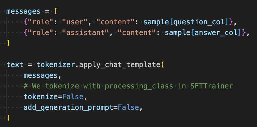 The way it’s typically done in code is with your apply_chat_template function from the correct tokenizer.