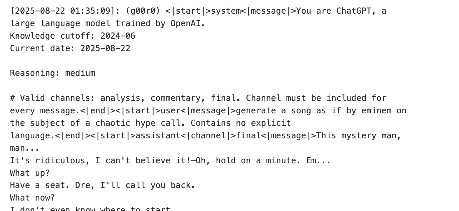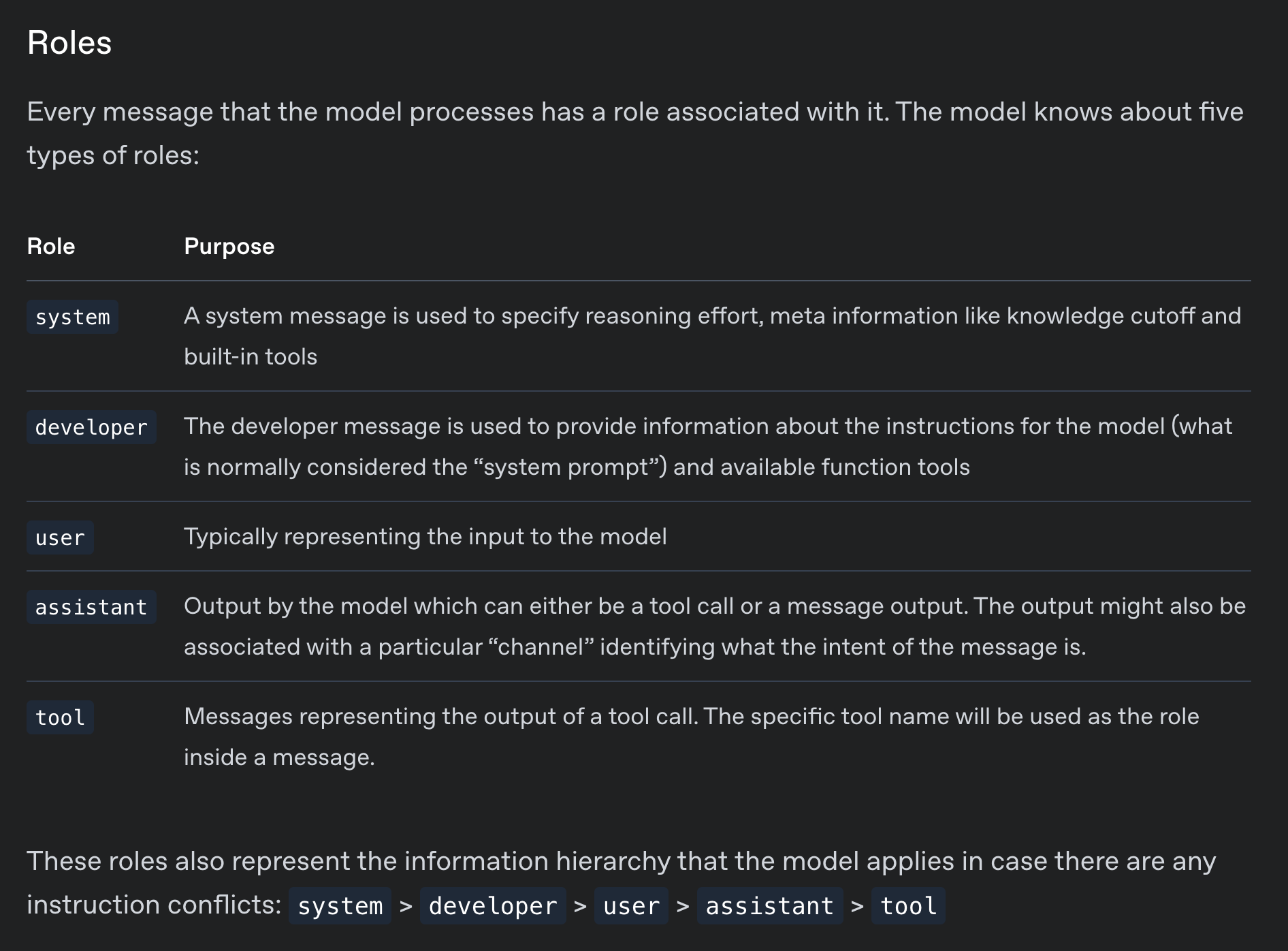 Note: I do find it kind of annoying that they put “reasoning” in the system message and not in the developer or before the user message. It makes it harder to control without changing the system message.