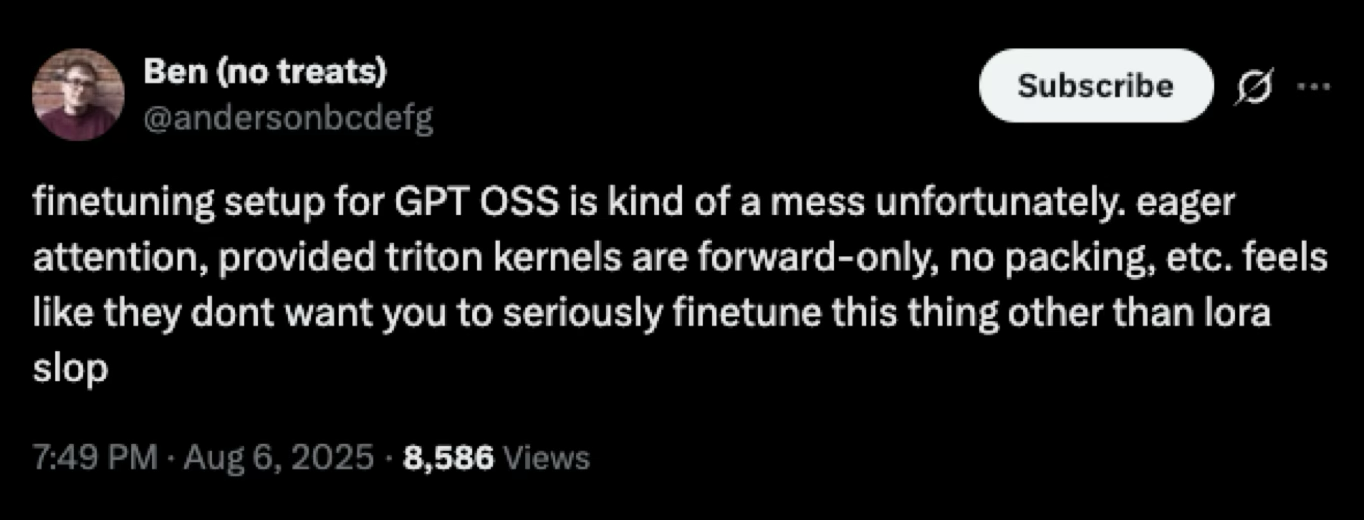 — Wing Lian (caseus) (@winglian) August 20, 2025