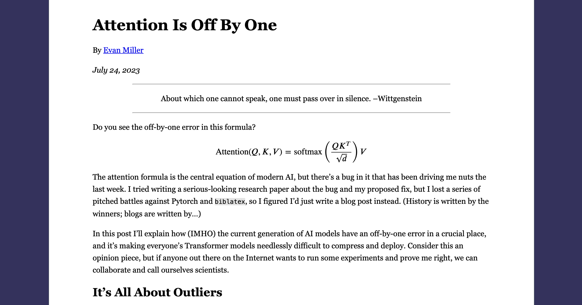 Researchers have found that if you put an “empty” slot at the start of the attention window for LLMs, it stabilizes their generation over time, because softmax can be…for lack of a better word, softer.