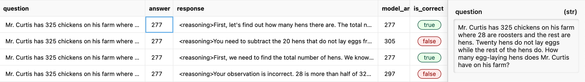 The model might come up with a few different reasoning traces, some correct (answer=227), and some incorrect (answer=305).