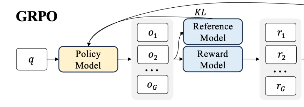 The problem is that PPO can be pretty expensive to train. The diagram from the GRPO paper shows all the different LLMs that are in the mix during PPO and GRPO. There are 4 different LLMs in the blue and yellow boxes below.