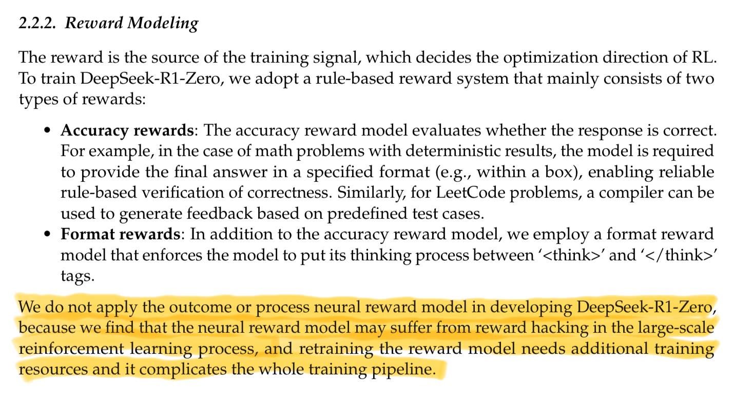 What’s super interesting about the DeepSeek-R1-Zero work is that they go even further to slash the memory usage because don’t use a “neural reward model”.