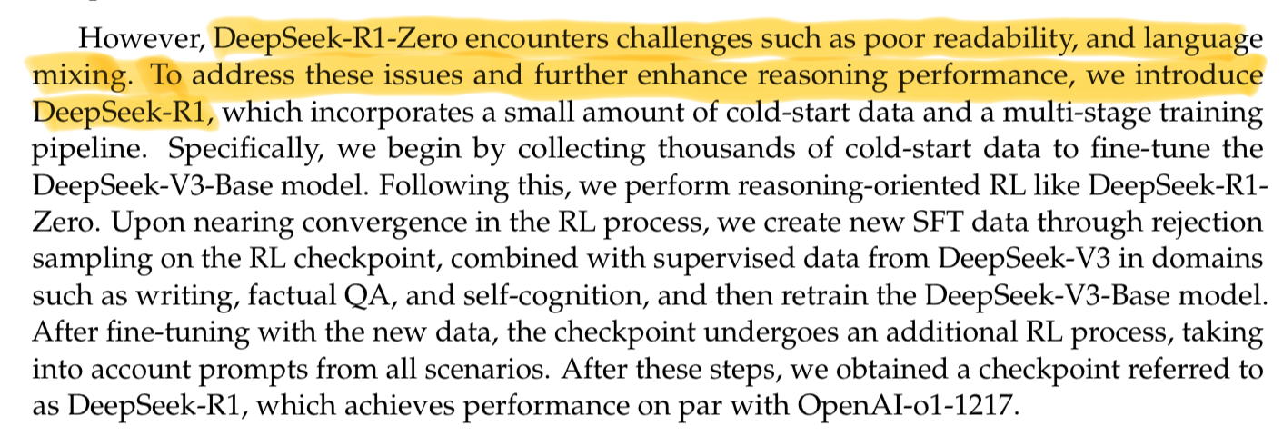 The process to go from DeepSeek’s base pre-trained language model to a reasoning model was laid out in detail in the DeepSeek-R1: Incentivizing Reasoning Capability in LLMs via Reinforcement Learning paper.
